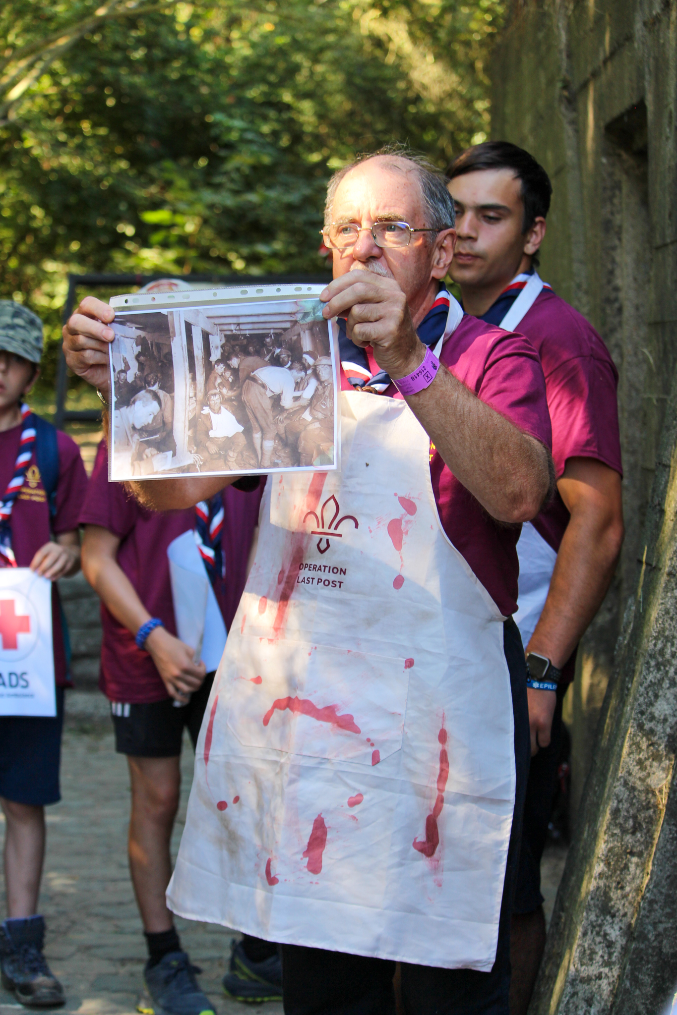 At Essex Farm, we stood in the very place where John McCrae wrote his famous poem In Flanders Fields in 1915. The site was once an Advanced Dressing Station, and the Scouts took part in an eye-opening demonstration of how wounded soldiers would have been treated—don’t worry, the blood was fake!