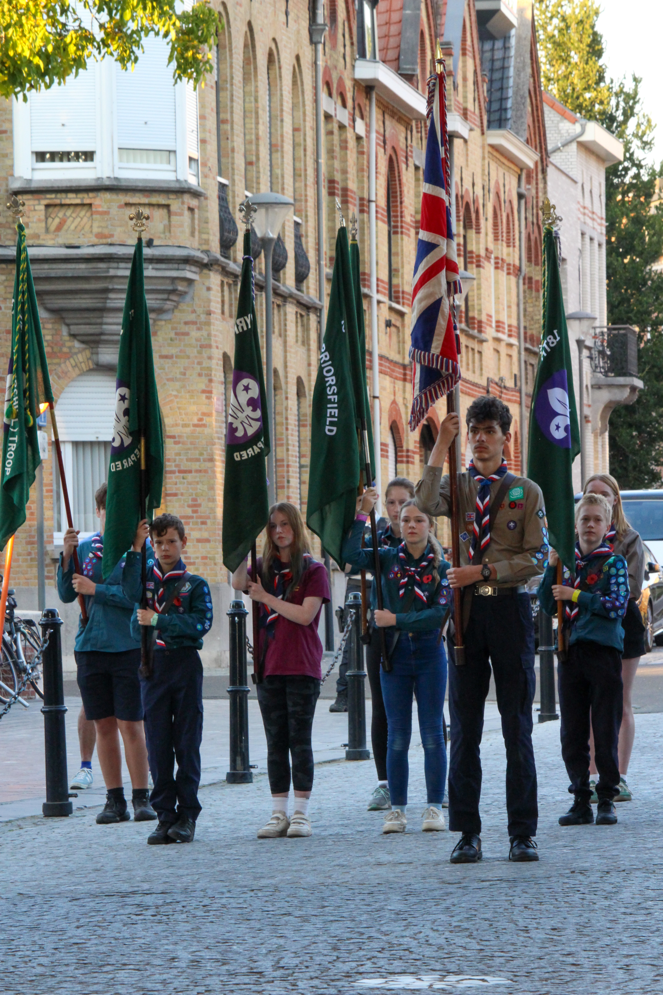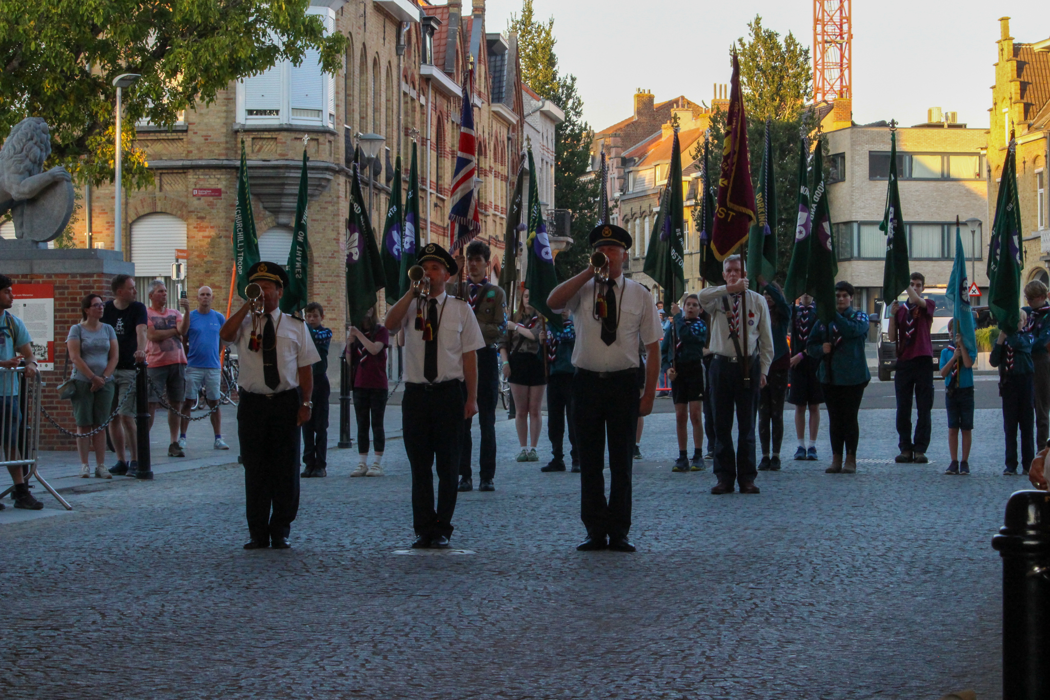 After a cooked dinner at a local Scout HQ we gathered under the Menin Gate for their 20:00 service. The Last Post Ceremony is a daily act of remembrance for the British and Commonwealth soliders who died in the Ypres Salient during WWI and who have no known grave.