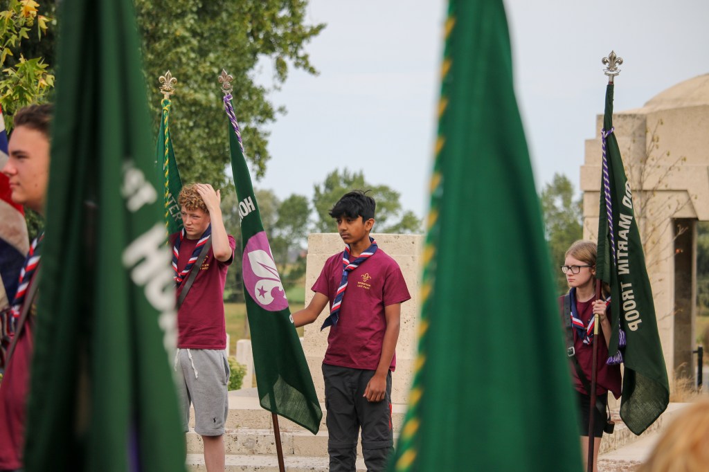 With 18 flag bearers standing tall, accompanied by a bugler, our young people took part in a moving ceremony to remember those who gave their lives during the First World War. The service included Scouts reading aloud the Exhortation and the Kohima, echoing with meaning among the rows of headstones.